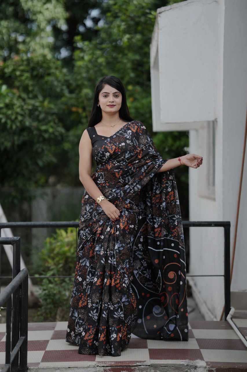 Home / 83 PADMAVATI BLACK MULMUL COTTON SAREE