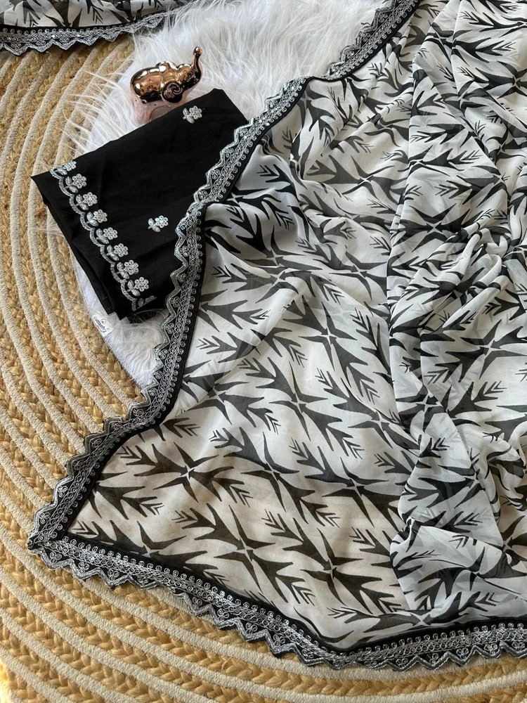 Crafted with graceful georgette and detailed coding embroidery lace work, this saree gives a rich and classy look. Perfect for festive occasions, parties, weddings, and special celebrations.