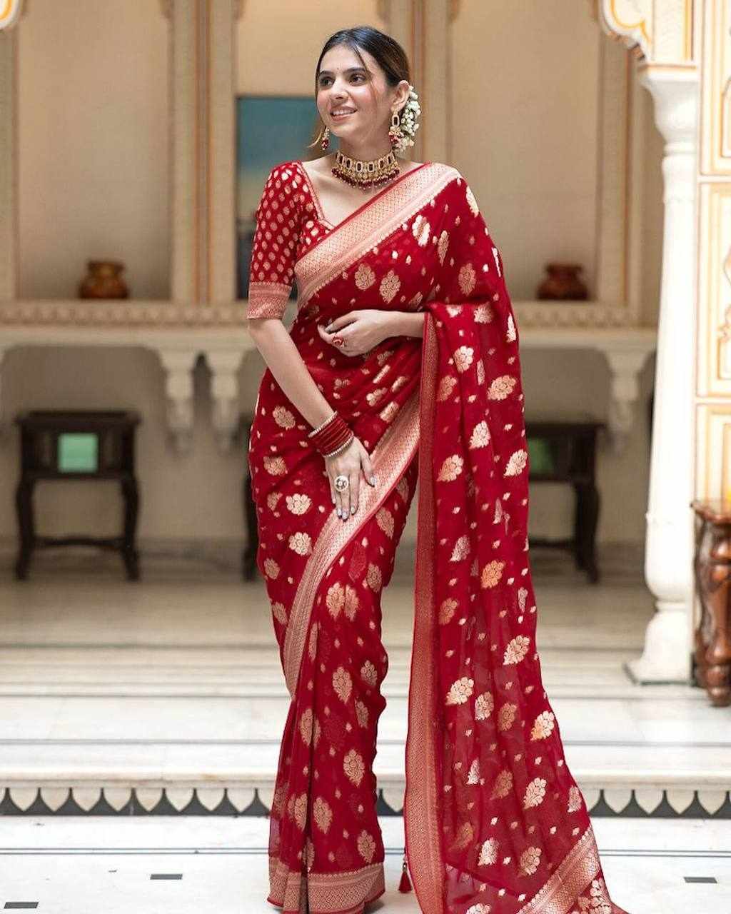 Home / KP-R 190 New Traditional Wear Red Saree