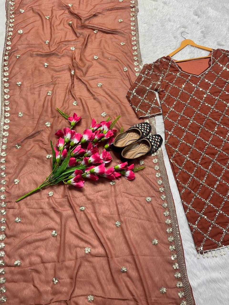 MF 409 New Fancy Embroidered Dark Orange Dress