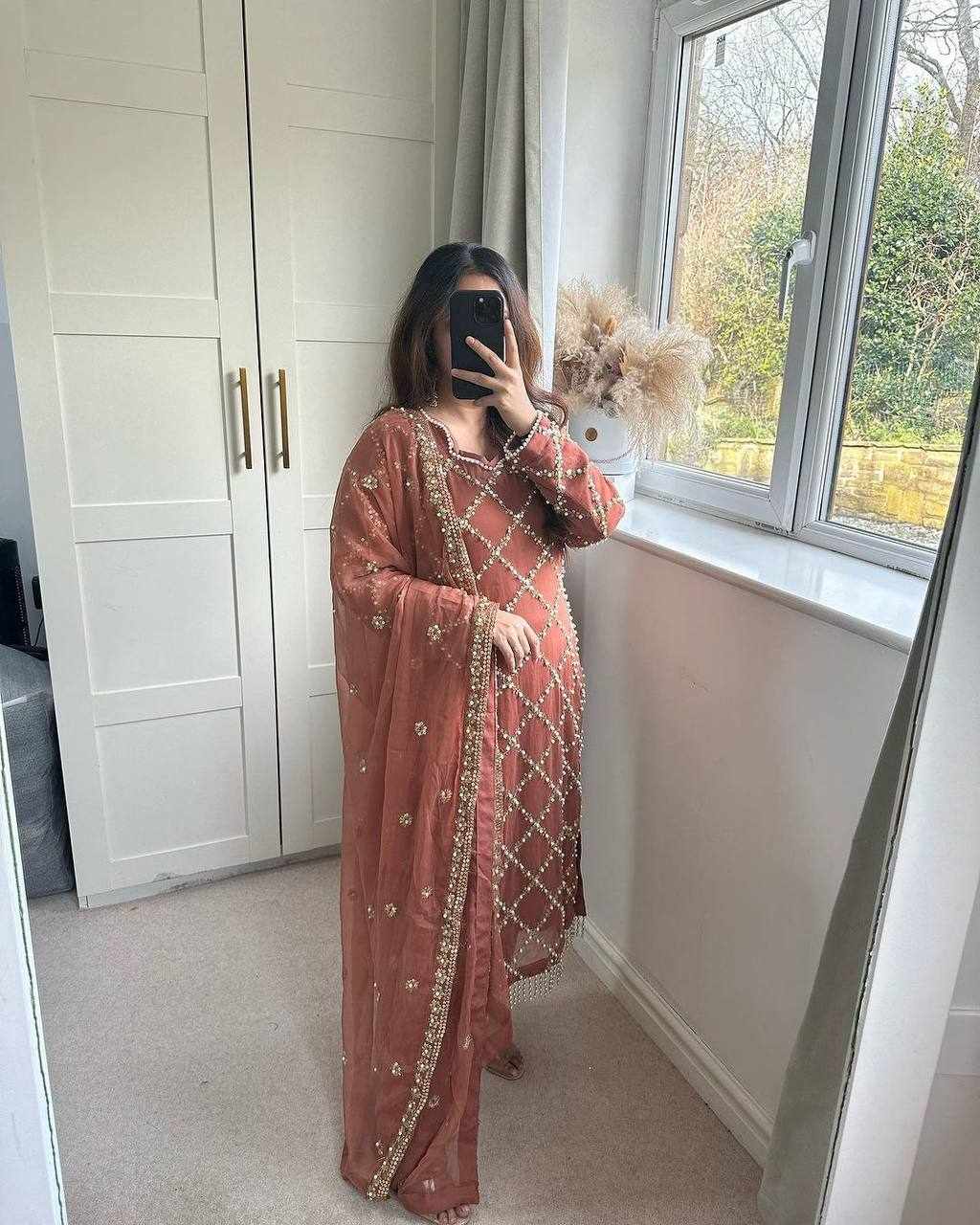 Home / MF 409 New Fancy Embroidered Dark Orange Dress