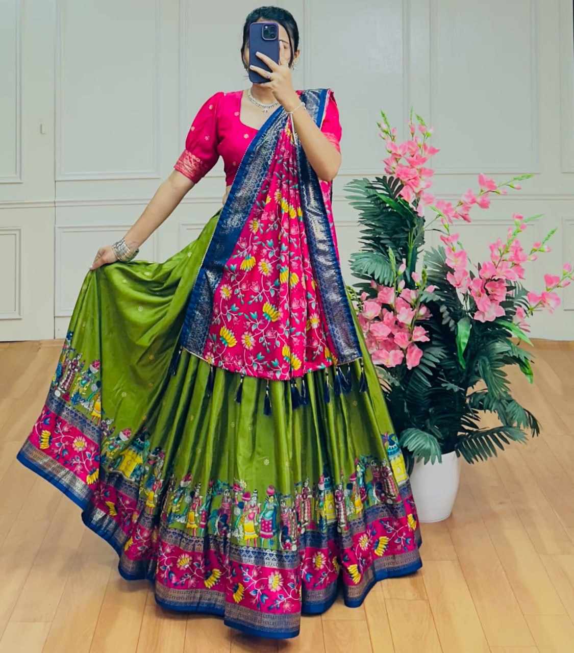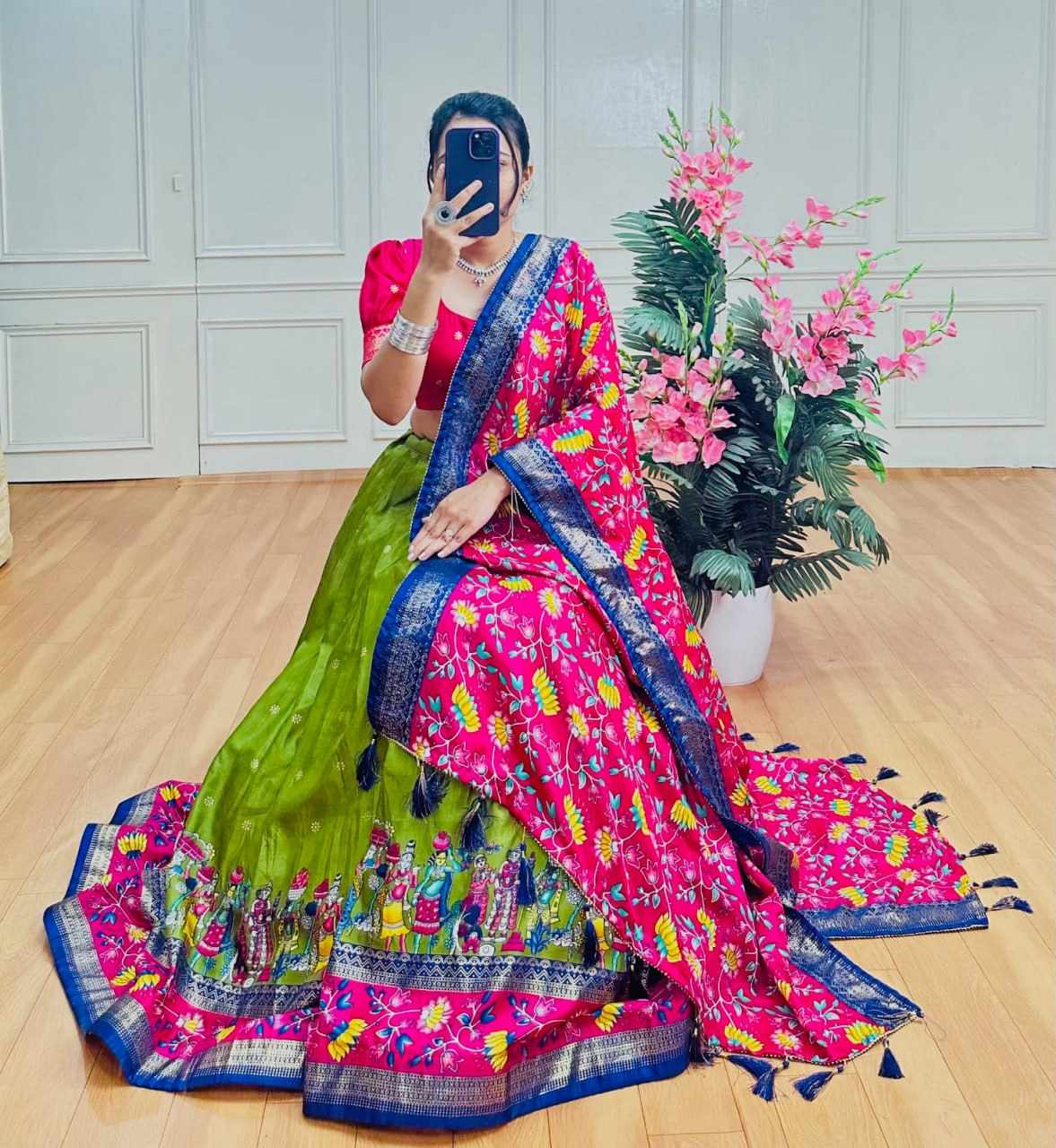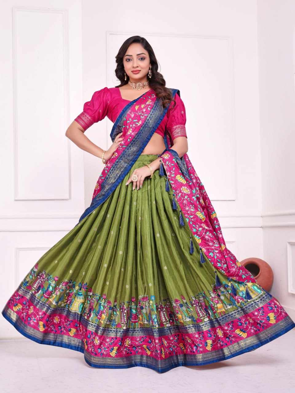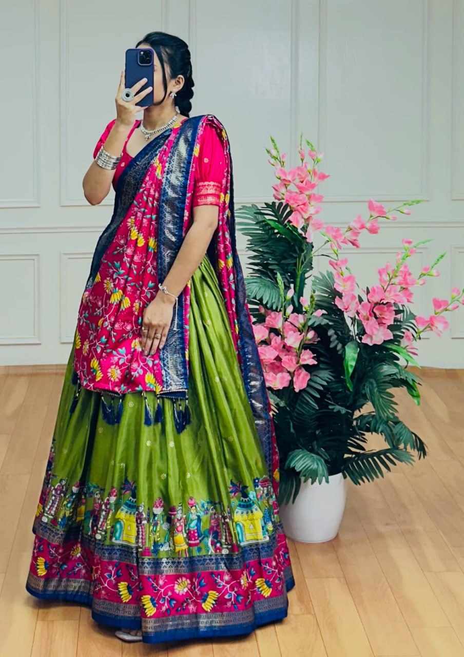 Home / PIYU 10-2 Silk Chaniya Choli With Viving Foil Mehndi Colour Lehnga