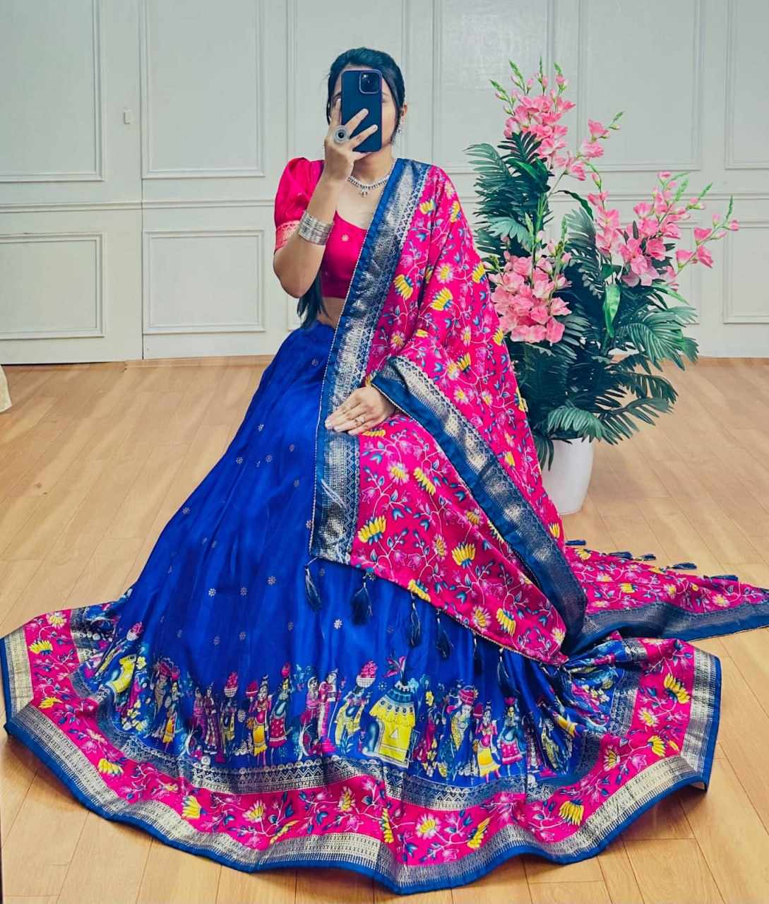 Home / PIYU 10-2 Silk Chaniya Choli With Viving Foil Royal Blue Lehnga