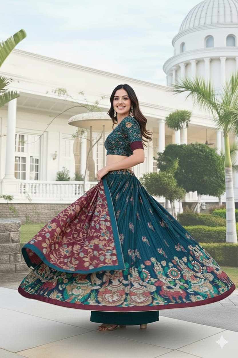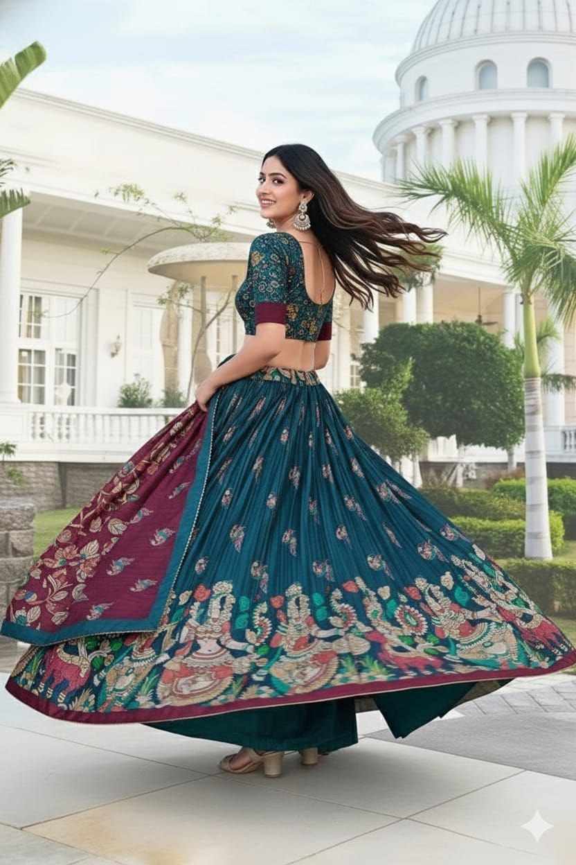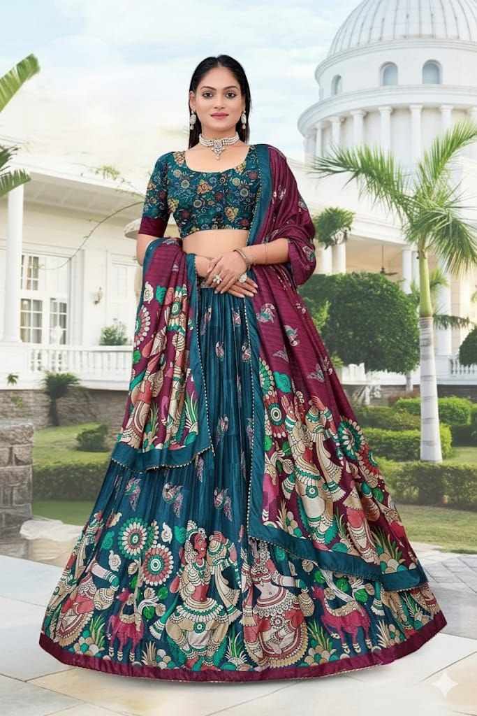Home / PIYU 16-2 Silk Digital print Rama Colour Lehnga