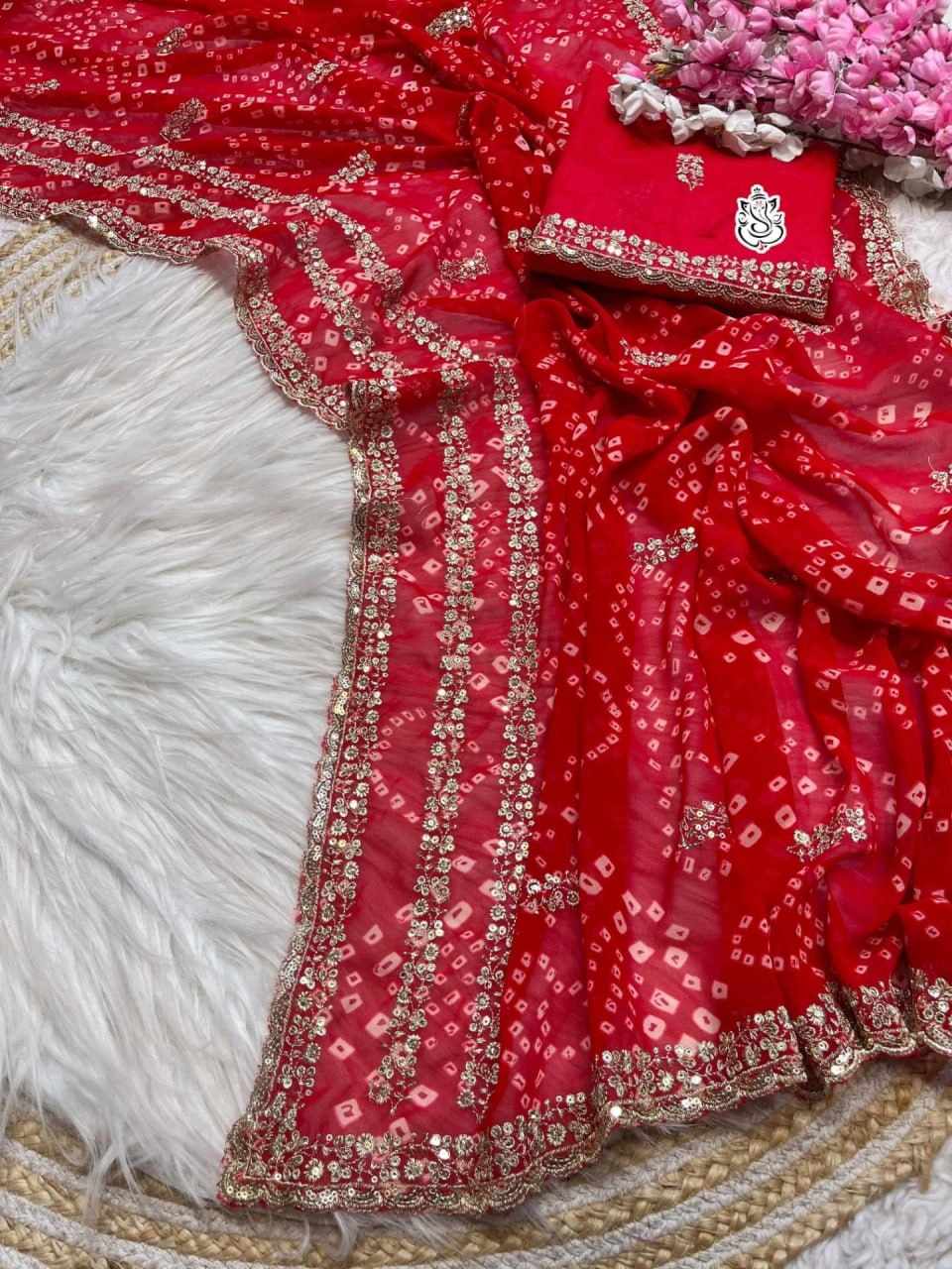 Home / PIYU P1033 LEHERIYA BANDHANI RED SAREE
