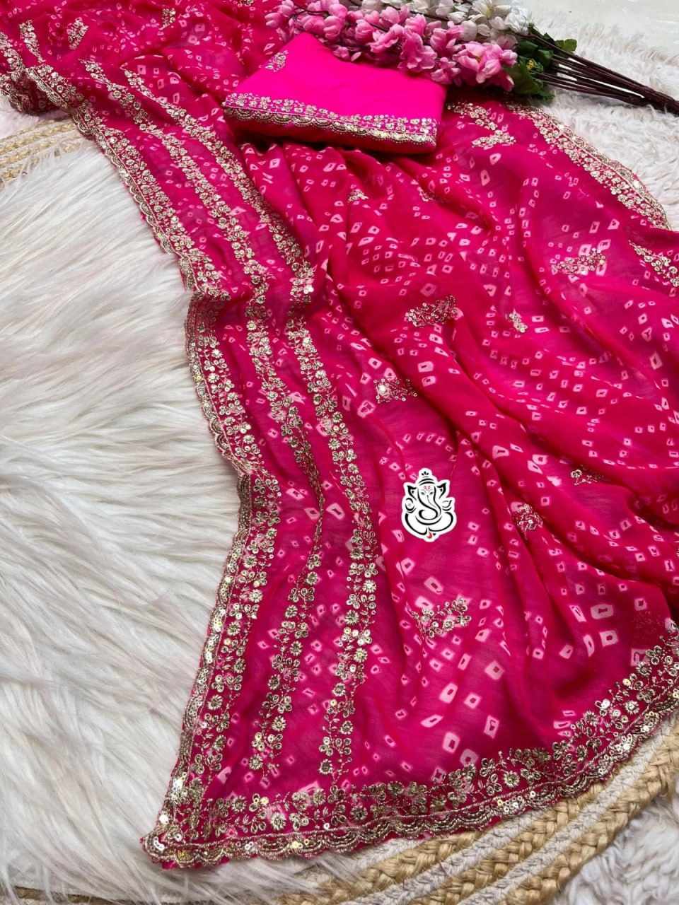 Home / PIYU P1033 LEHERIYA BANDHANI PINK SAREE