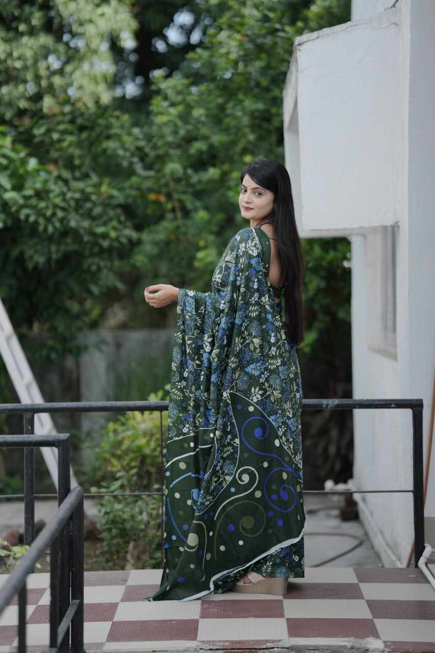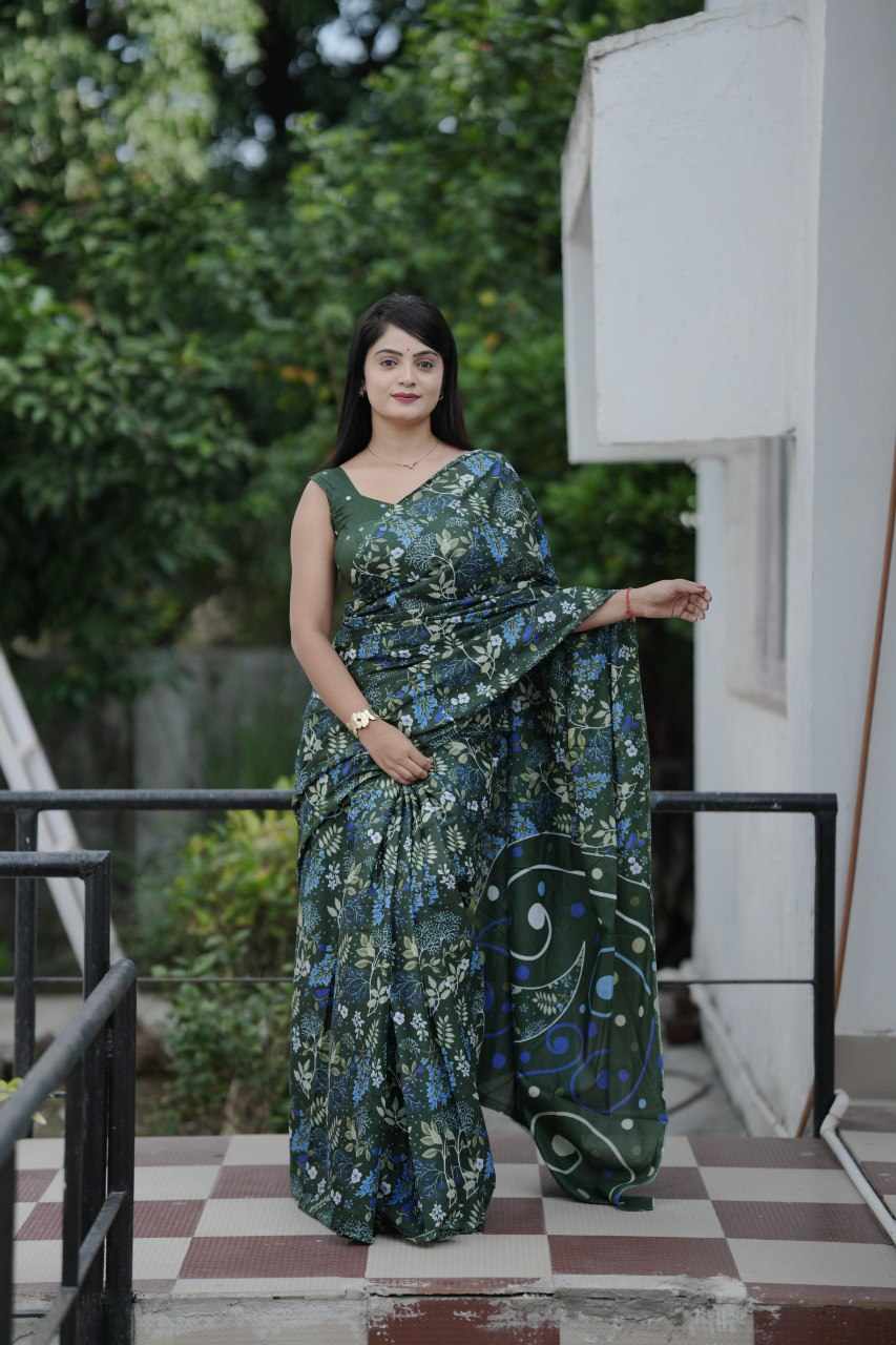 83 PADMAVATI GREEN MULMUL COTTON SAREE