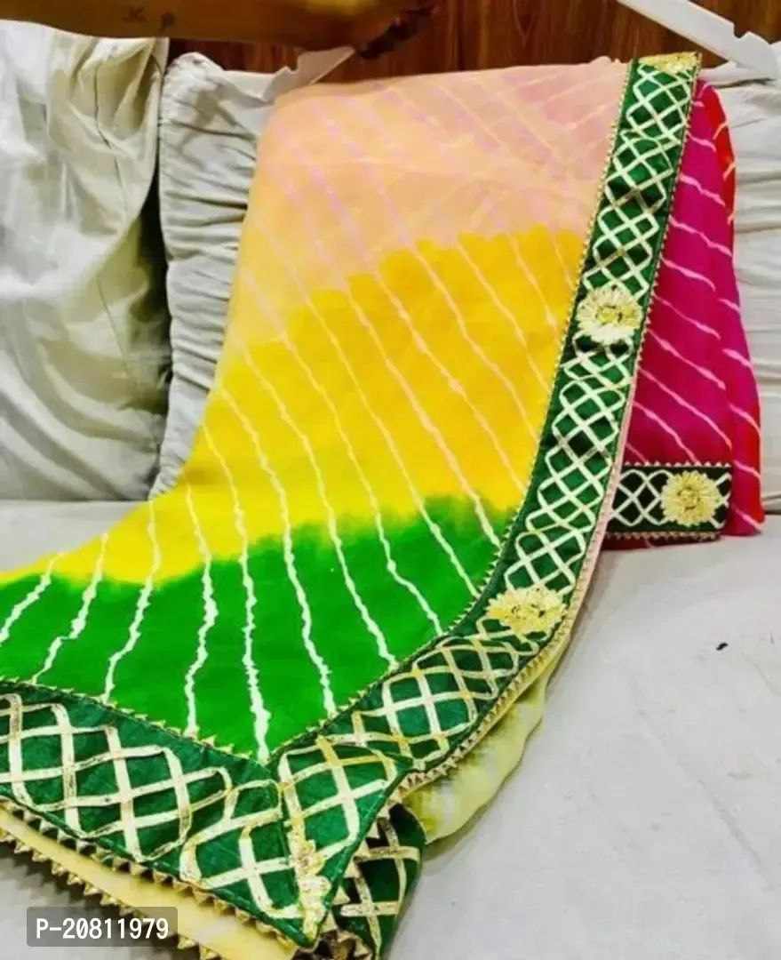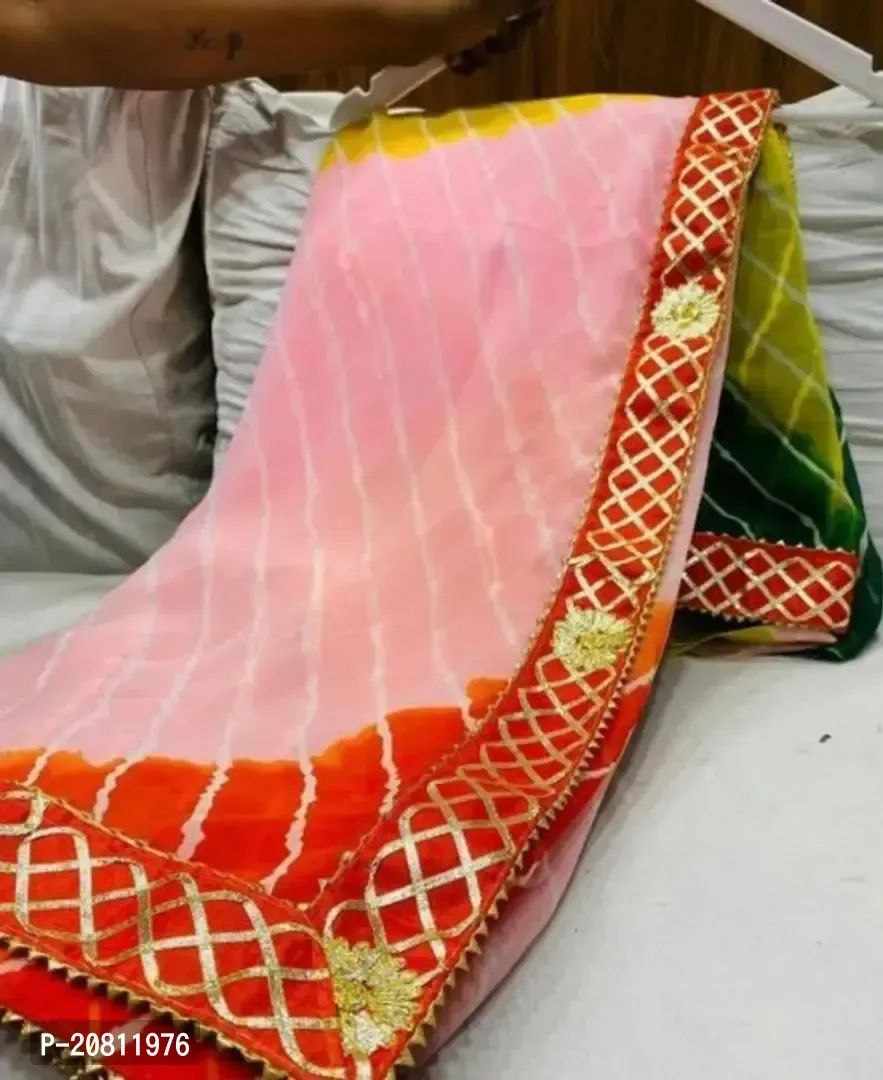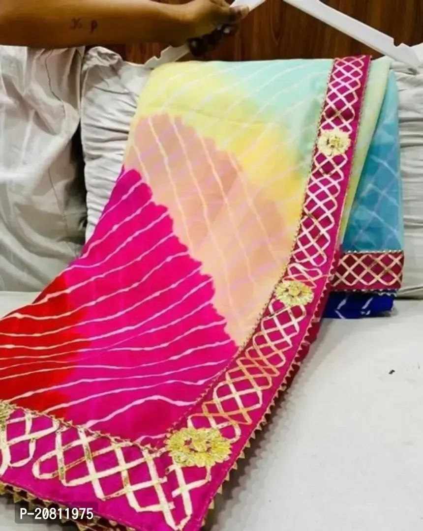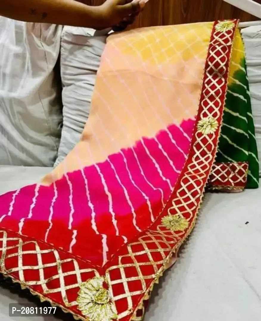 Georgette Multicolored Leheriya Gota Lace Border Sarees with Blouse Piece
