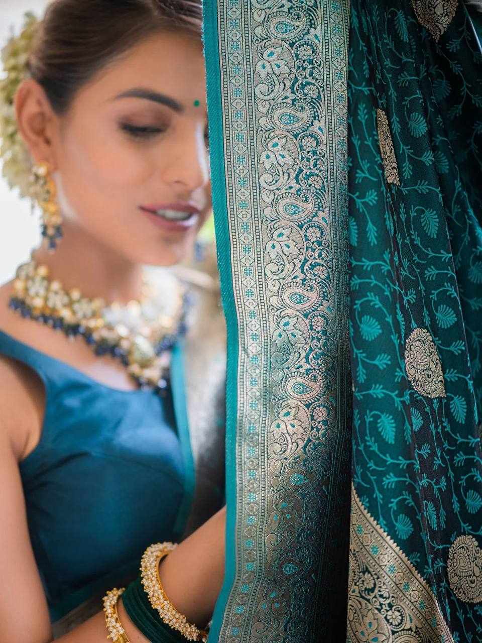 Home / KPR 252 BLUE SOFT LICHI SILK SAREE