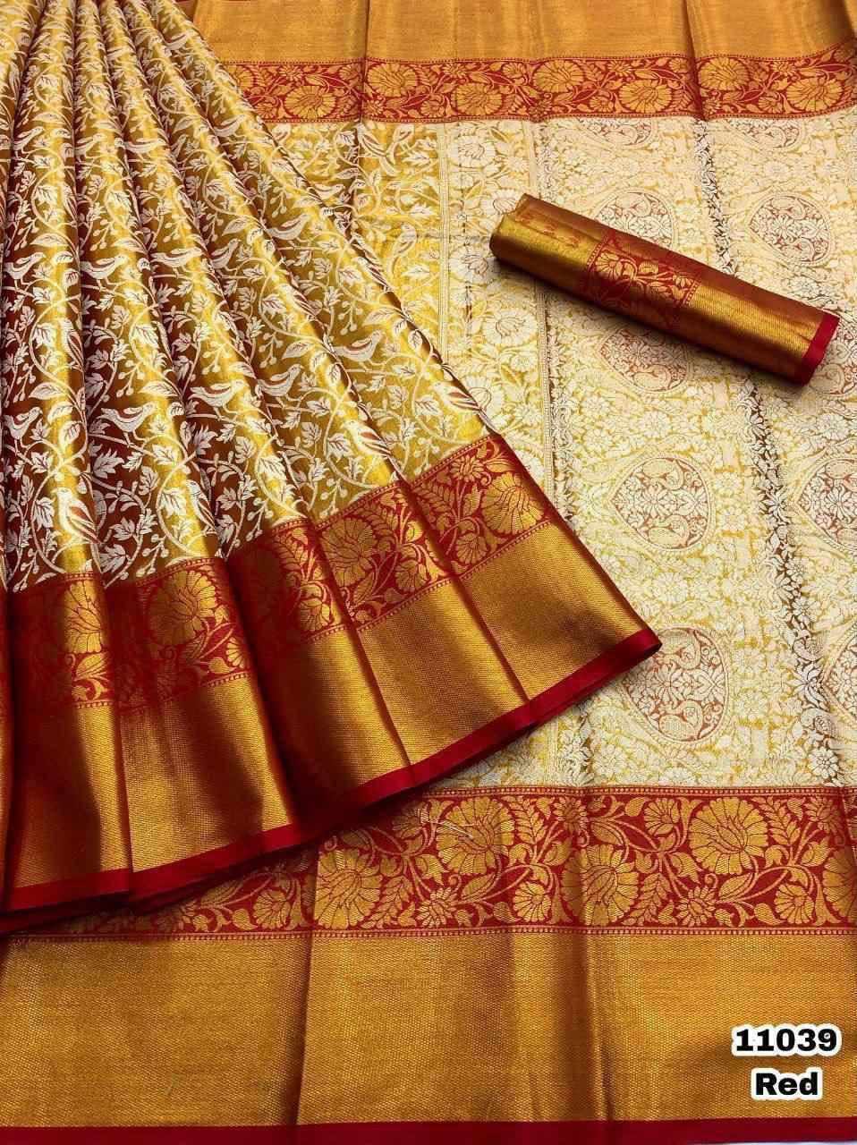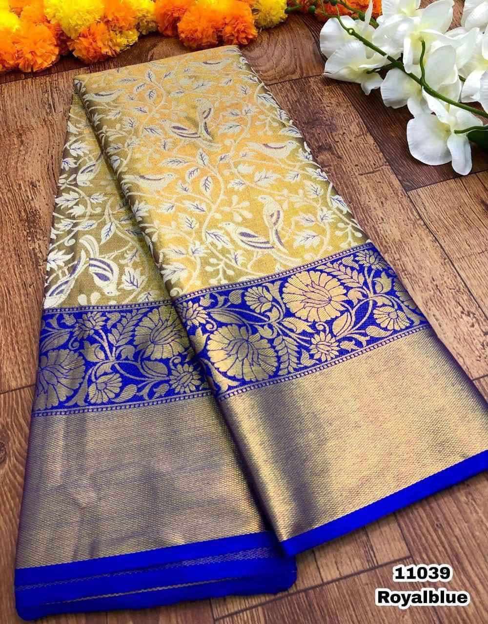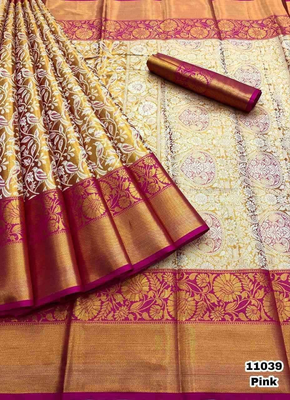 Pure Kanjivaram Silk With Mina Weaving & Contrast Border & Contrast Gold Zari Rich Weaving Pallu