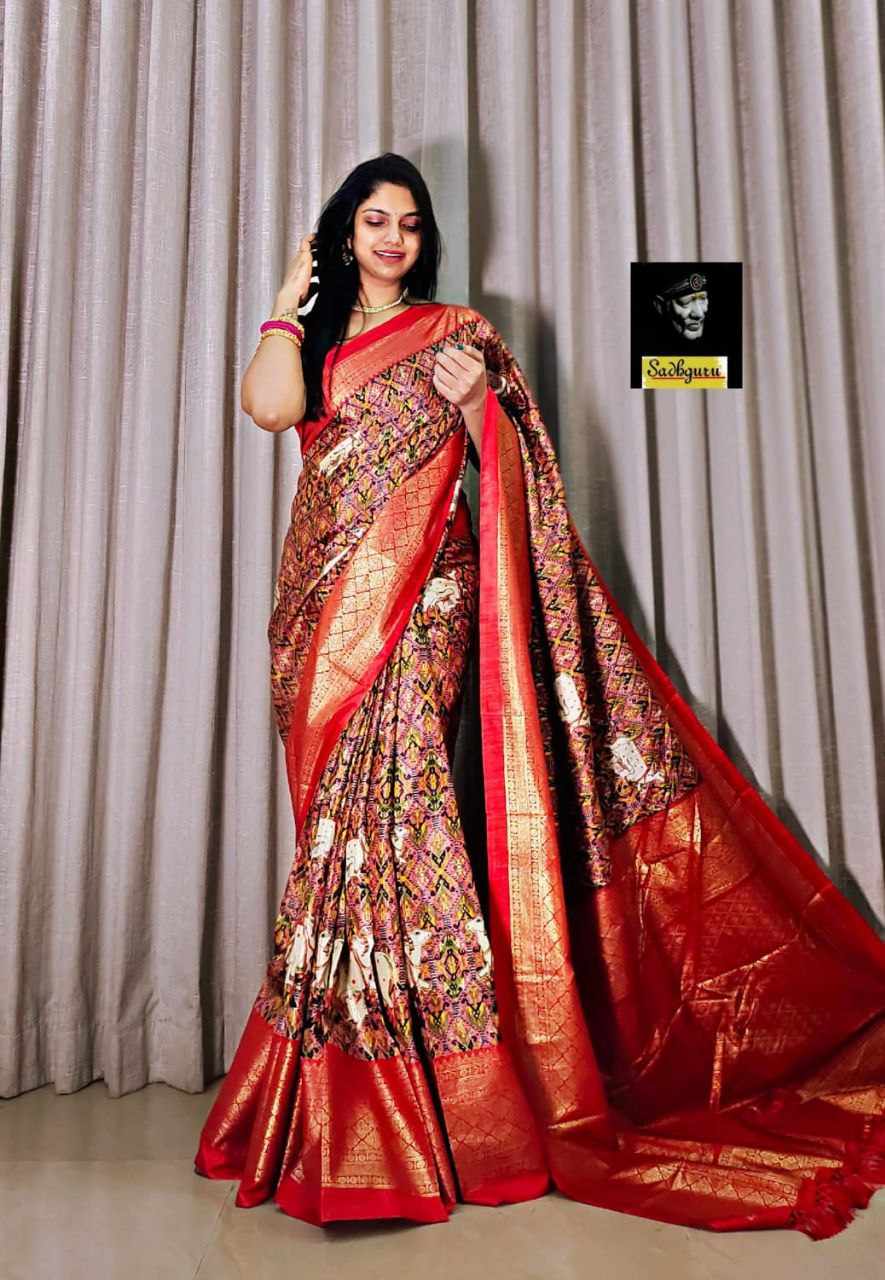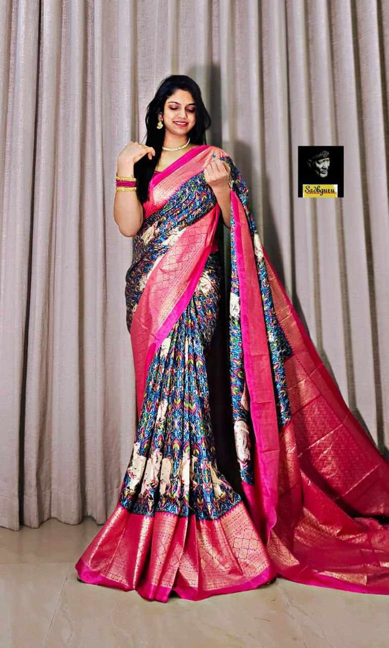 Launching New Soft Pure Dola Silk Kalamkari Patola Digital Print Saree With Gold Zari Foil Border With Kalamkari Style Printed Body And Pallu & border comes With Gold Zari Foil Work