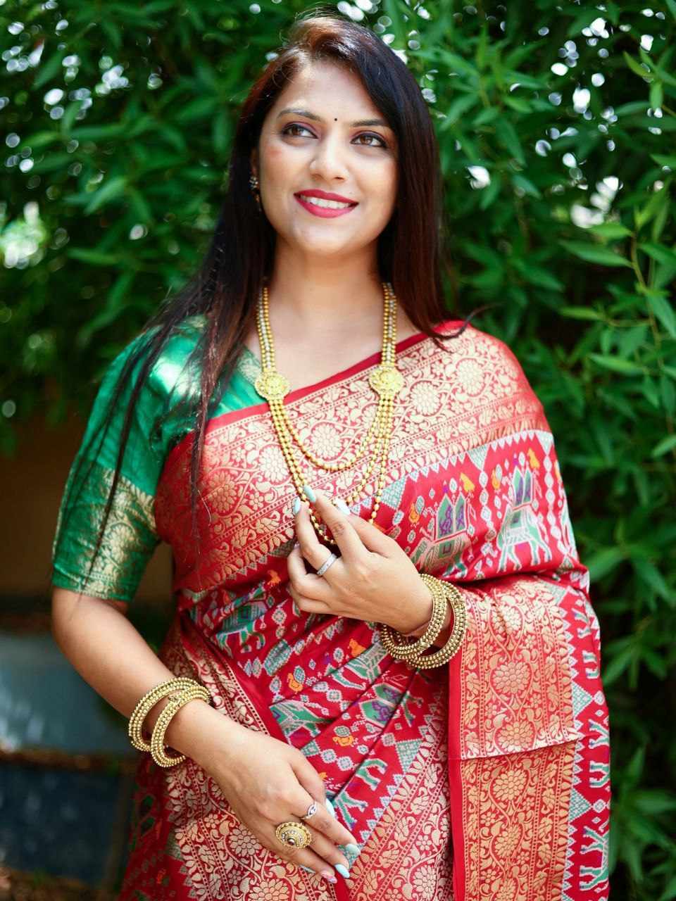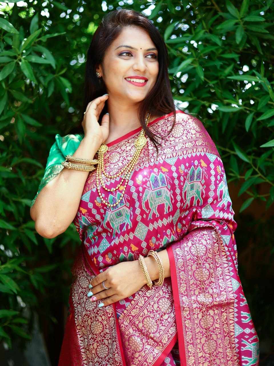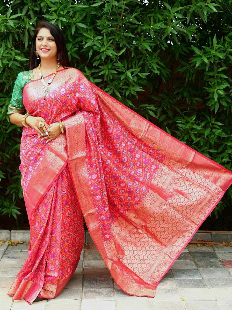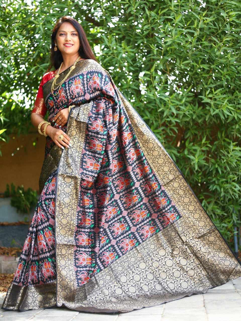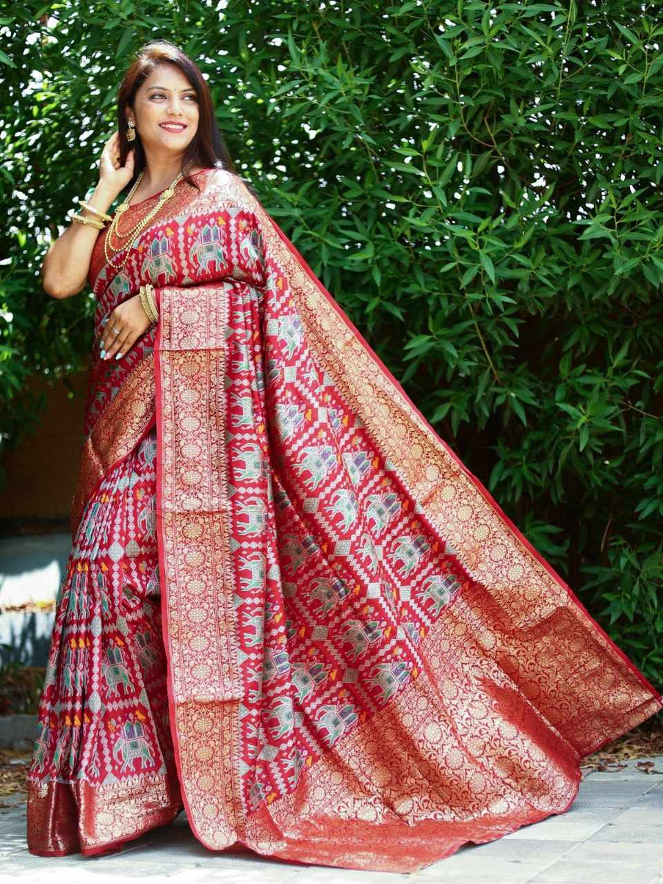 Saree has IKKAT Designed In All over zari Patola Weaving Concept with weaving Rich Pallu