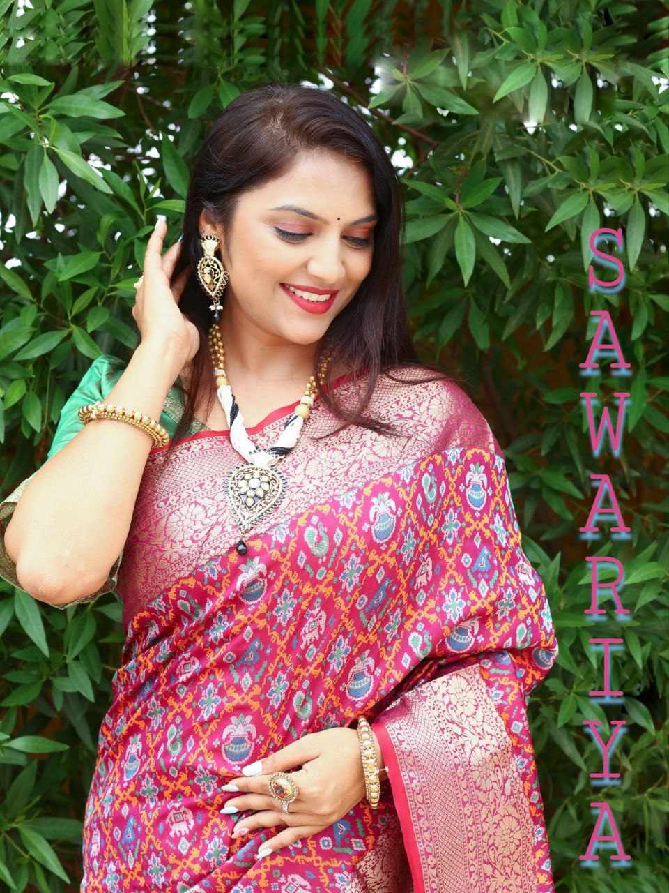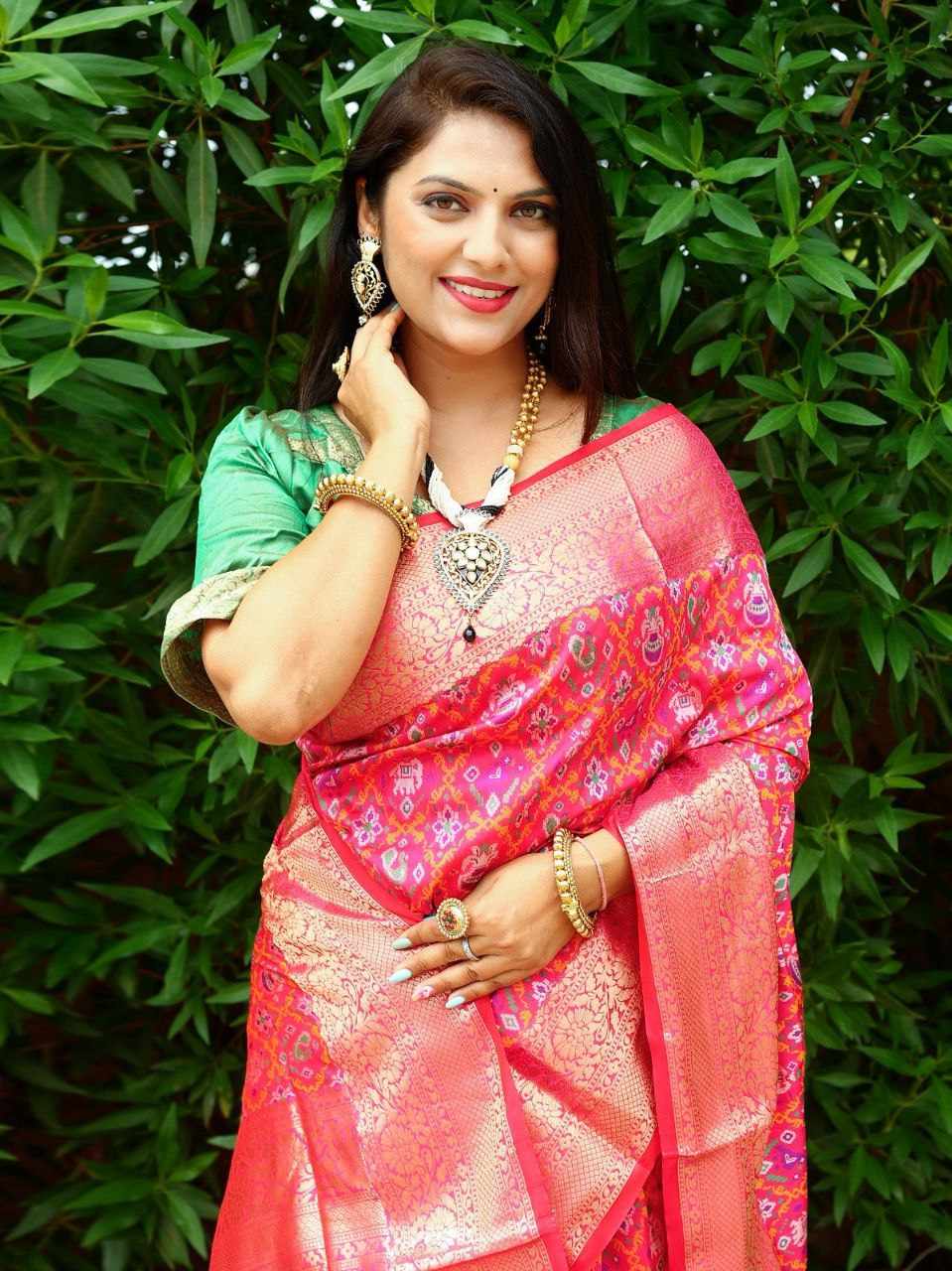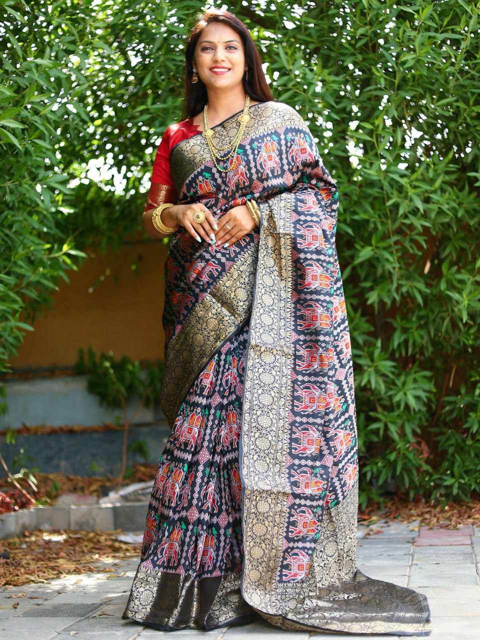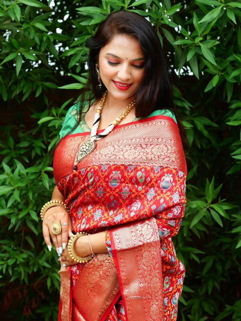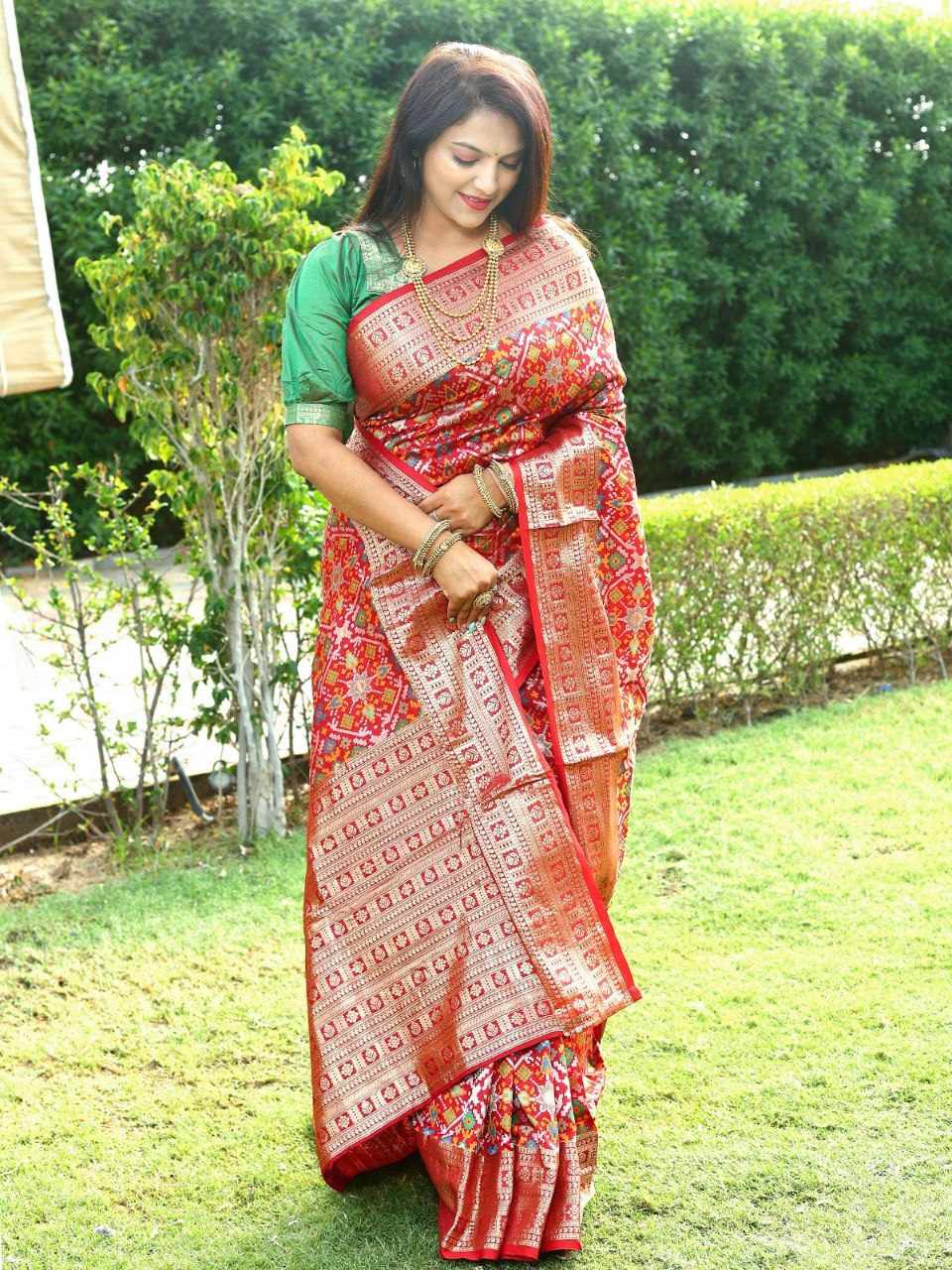 Saree has IKKAT Designed In All over zari Patola Weaving Concept with weaving Rich Pallu