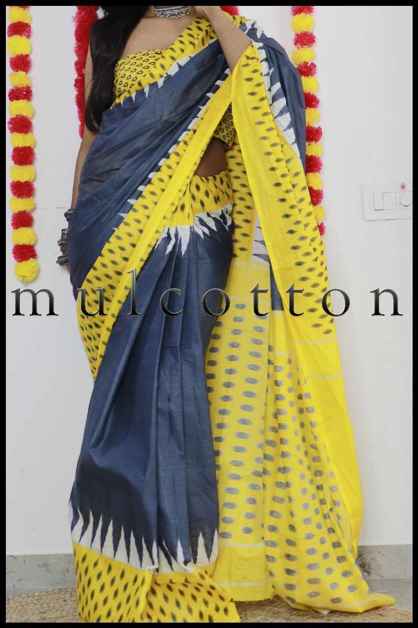 SAREES : *6.30 MTR PURE COTTON JAIPUR BLOCK PRINT SAREES WITH UNSTITCHED BLOUSE PICE*