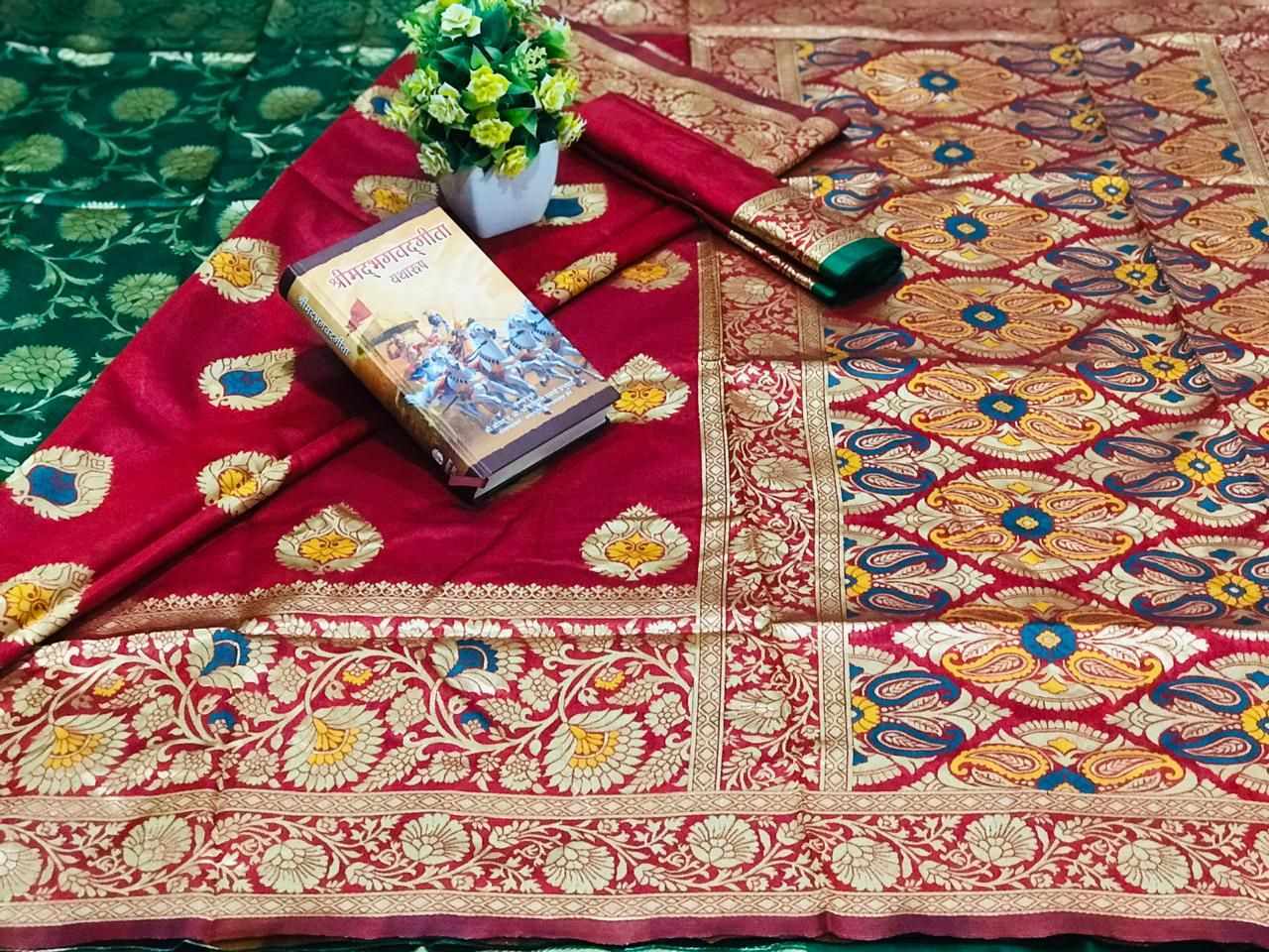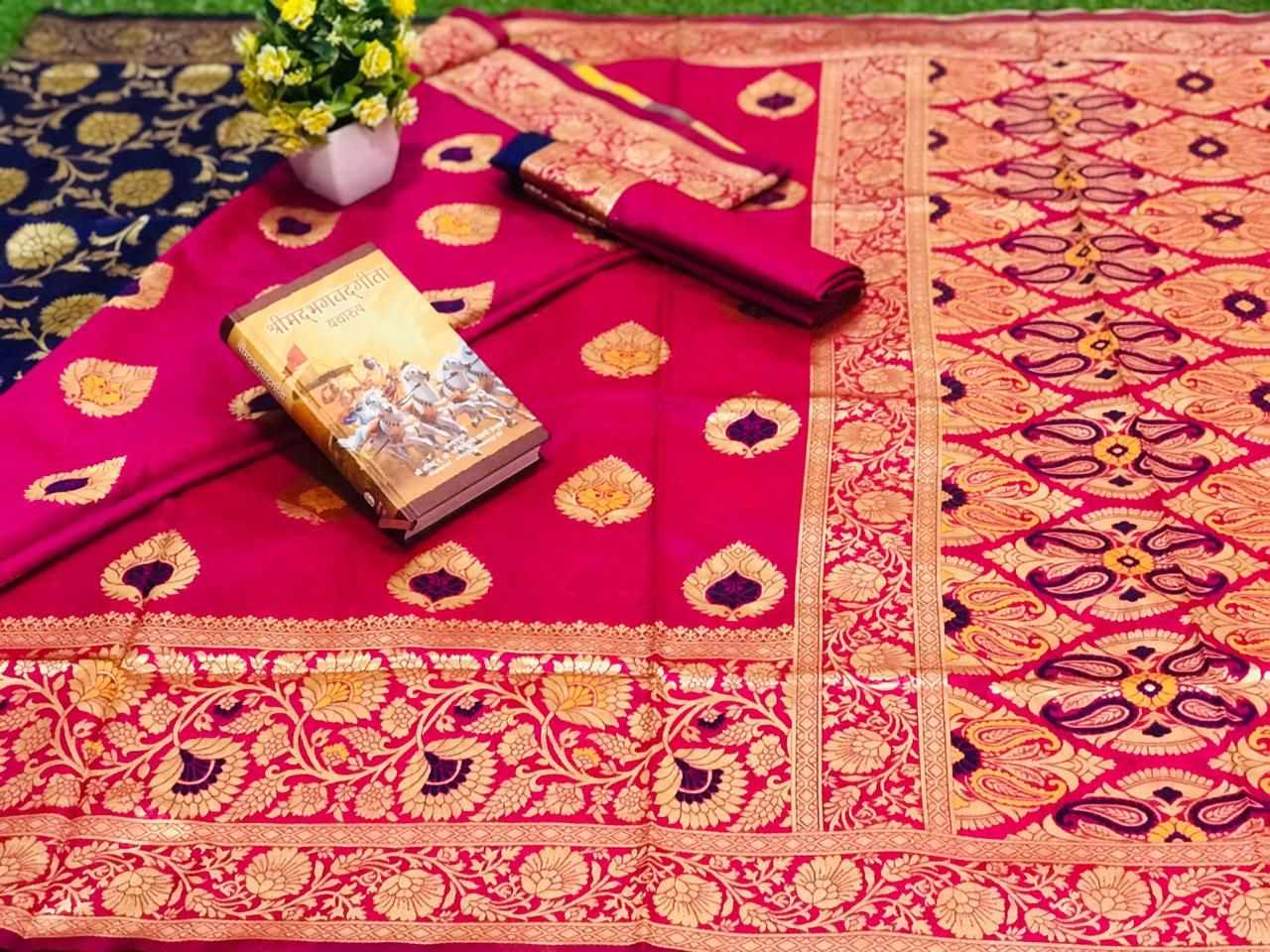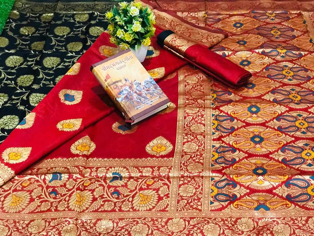 *Highly Valued, Known To Have Descended From the Royalty, Banarasi Silk Saree ,Made of Finely Woven Silk Decorated with Intricate Design In Golden Zari..With Attractive Rich Pallu and weaving Blouse attached*