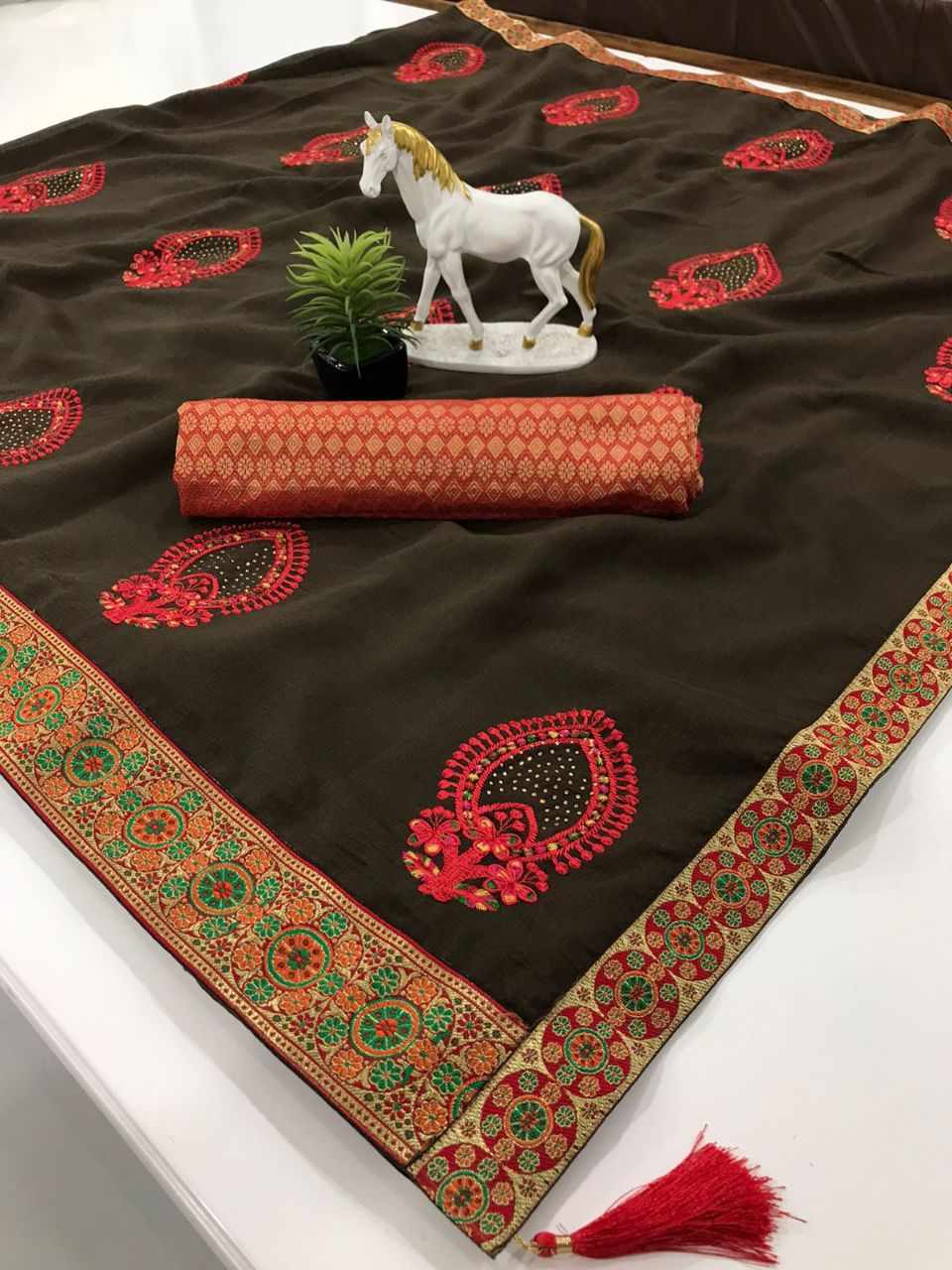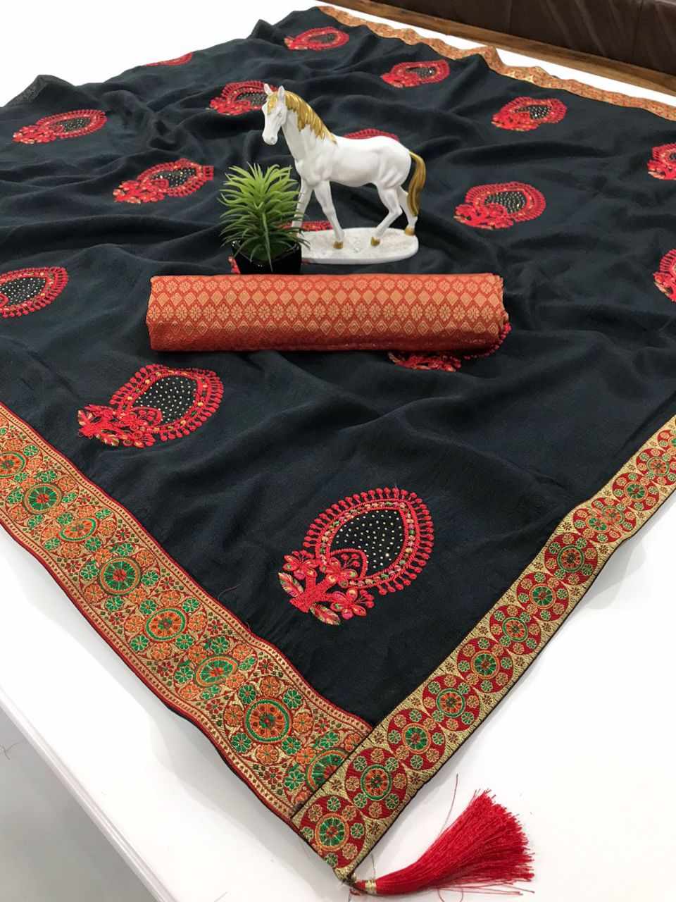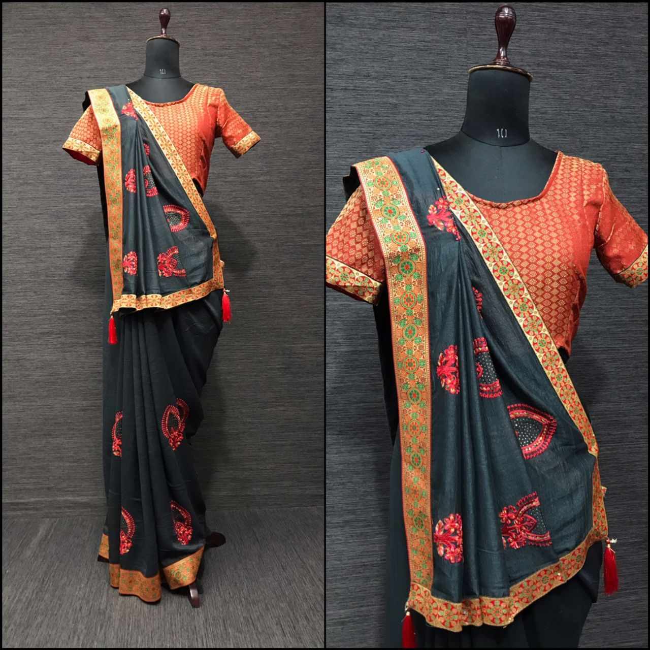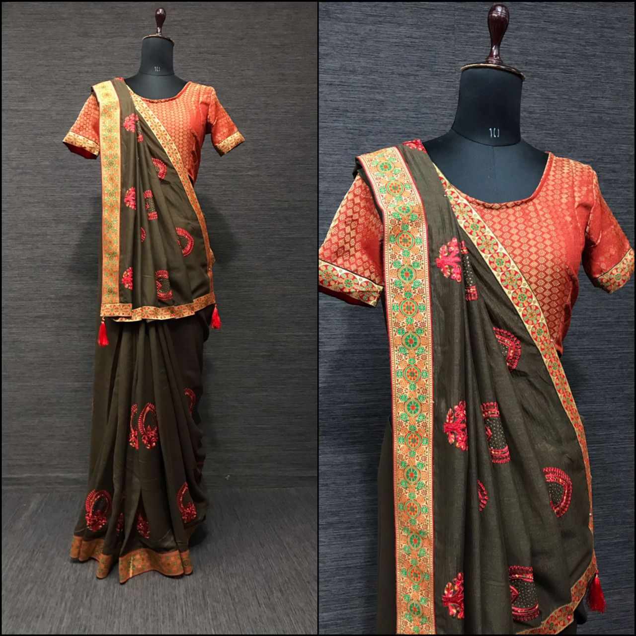 *Saree has embroidery work and Swarovski diamonds and banarasi lace border and tussles on pallu*