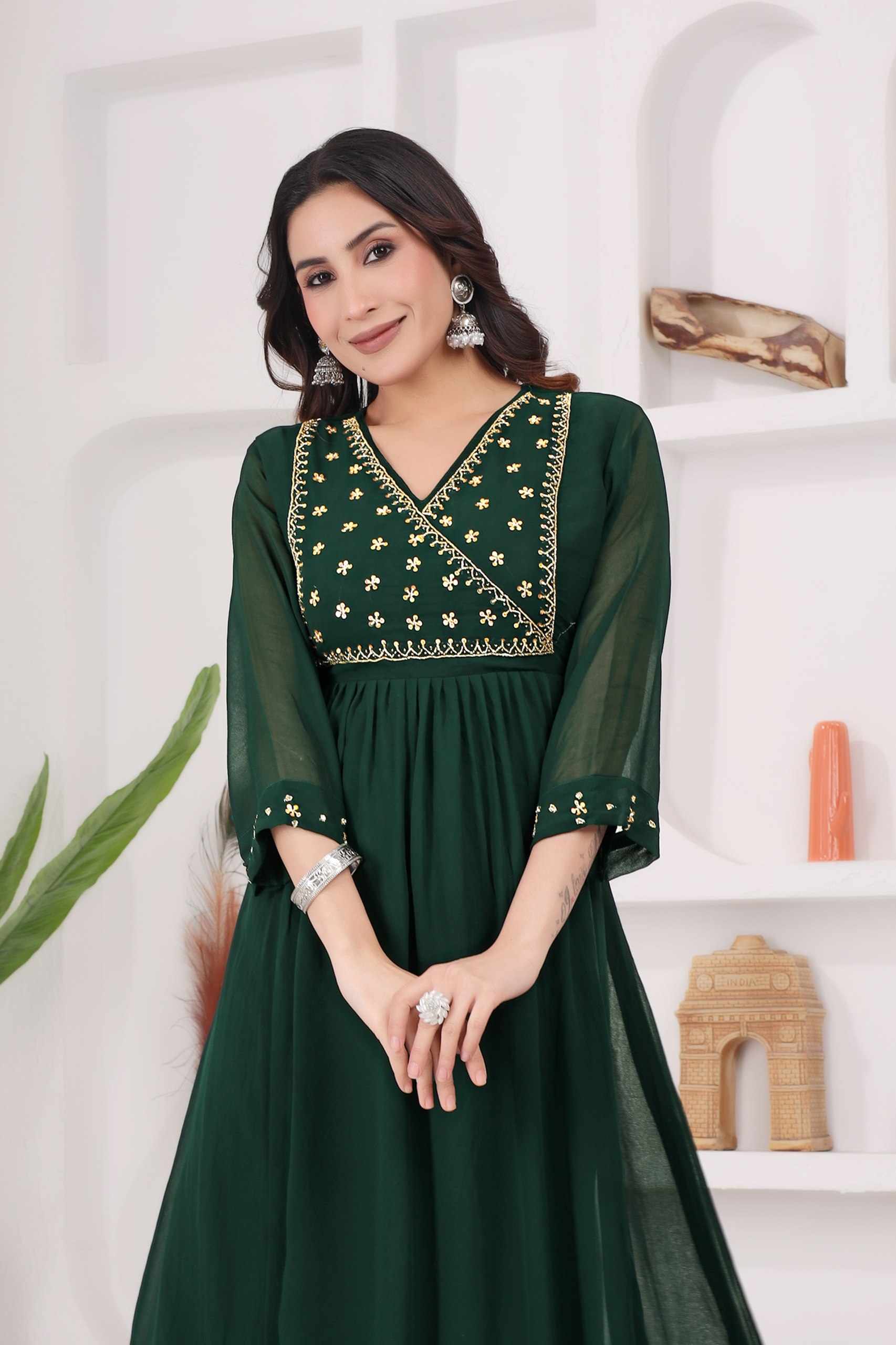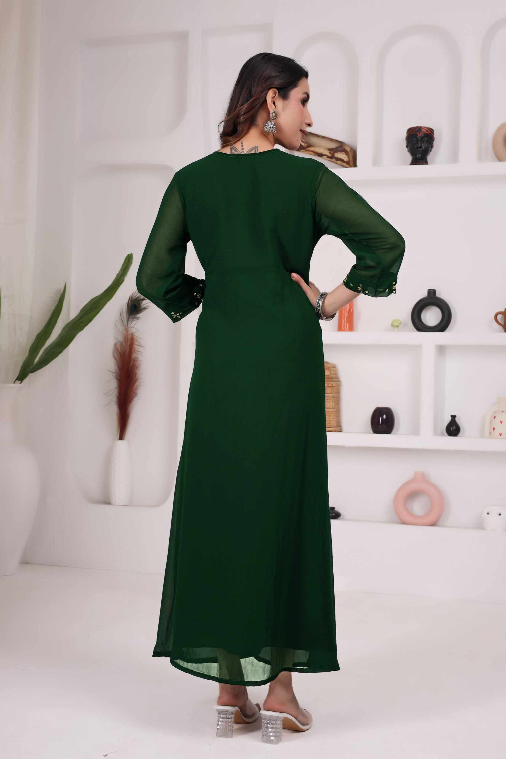 Home / WM12 GREEN BLOOMING GEORGETTE BEAUTIFUL HANDWORK KURTI
