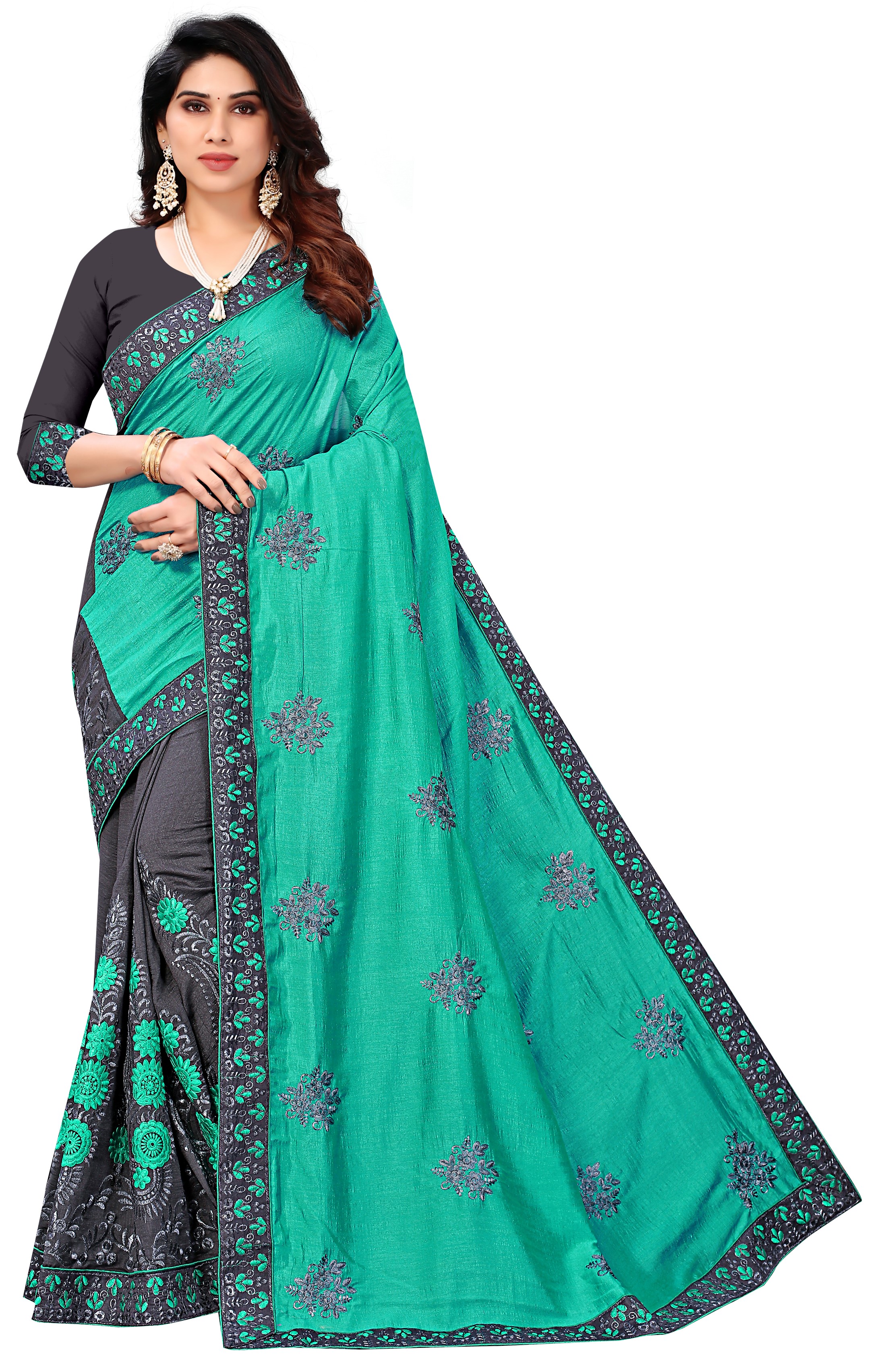 | Name : | Womens Fashion Heavy Embroidery Half and Half Saree |